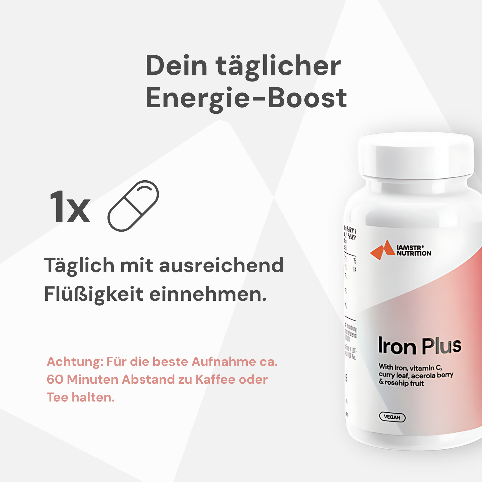 Integriere Iron Plus in deine tägliche Routine und erlebe, wie du mehr Energie und Wohlbefinden in deinem Leben bekommst!