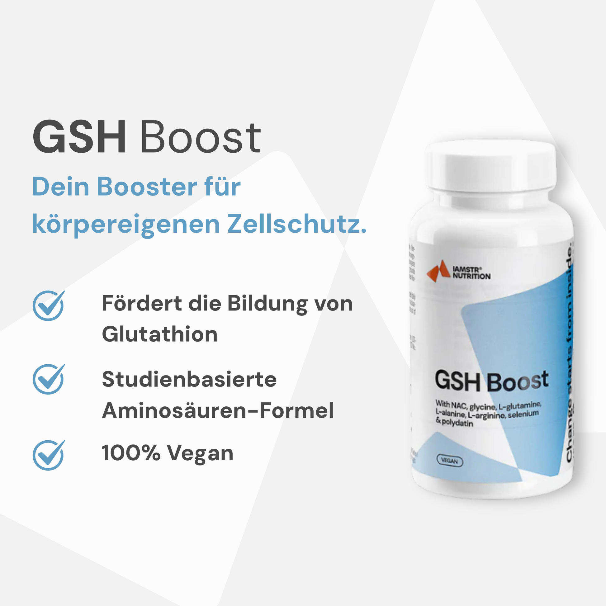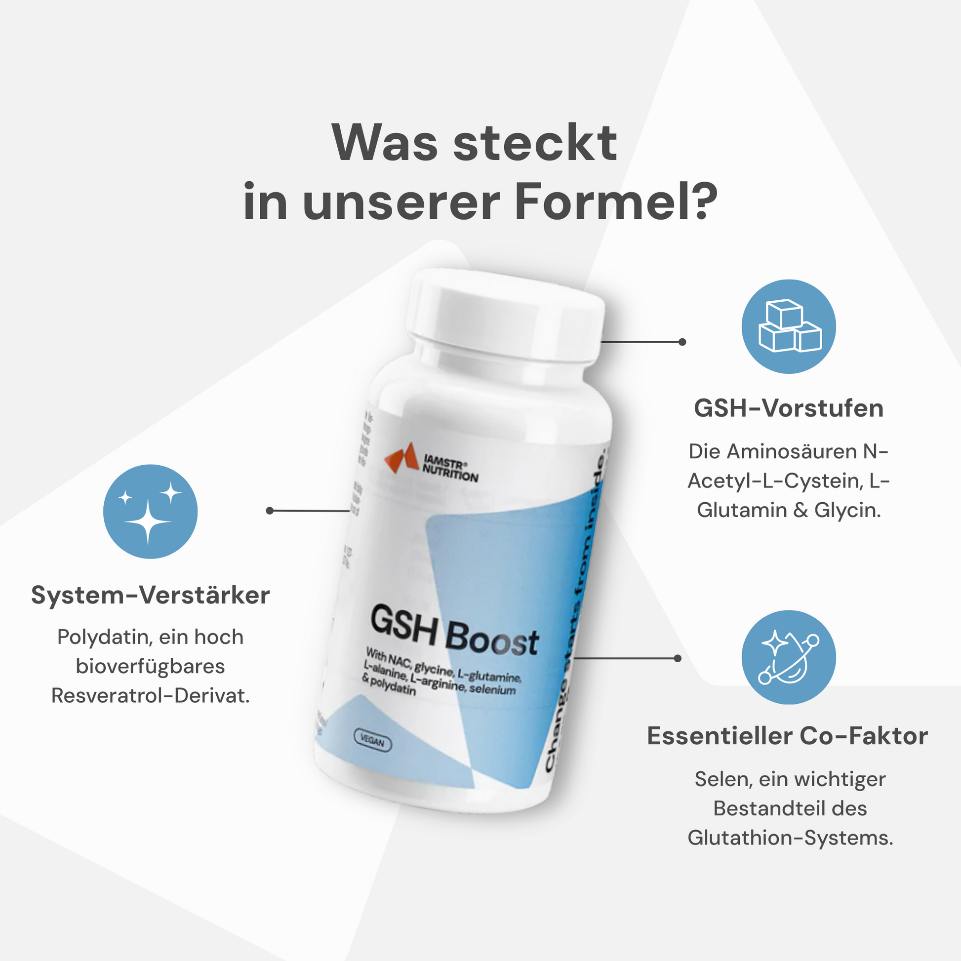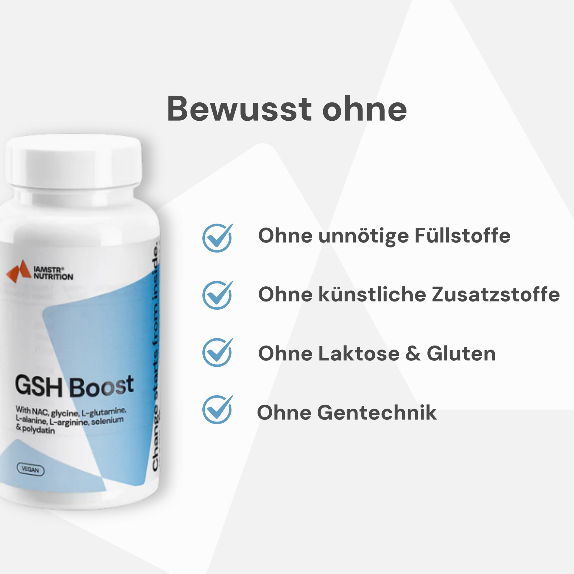 GSH Boost ist dein ultimativer Begleiter für mehr Zellschutz und ein starkes Immunsystem! Dieses spezielle Supplement liefert dir die wichtigsten Bausteine für die Produktion von Glutathion, einem der stärksten Antioxidantien in deinem Körper.