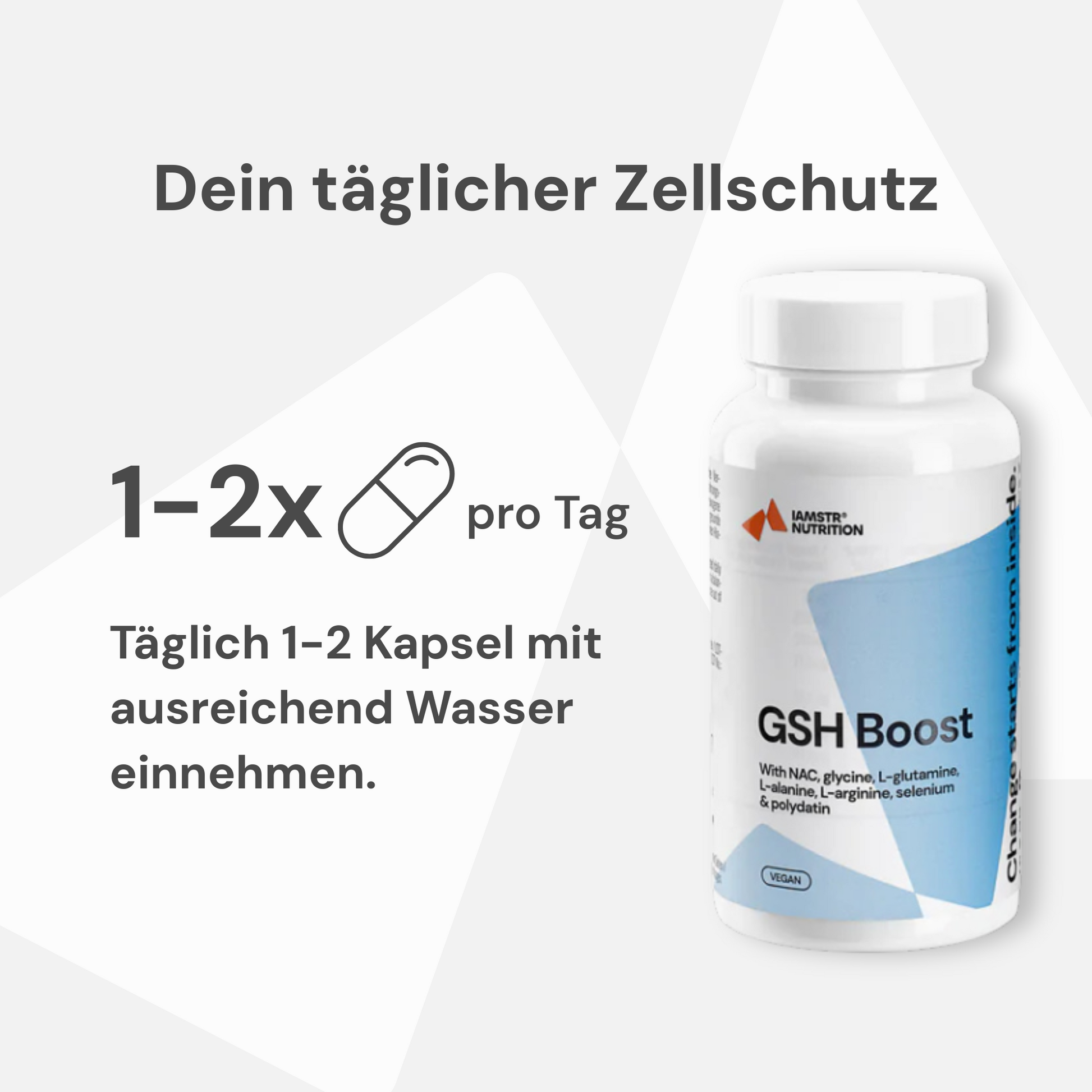 Füge GSH Boost zu deiner täglichen Routine hinzu und erlebe die Vorteile eines starken Zellschutzes und die Optimierung deiner Entgiftungsprozesse!