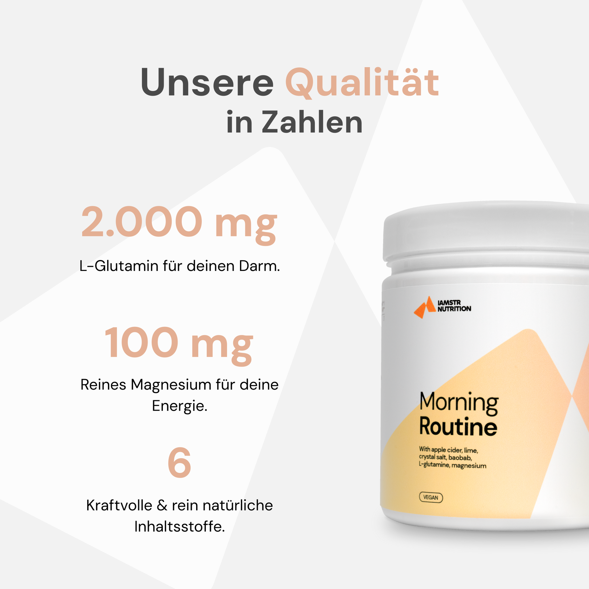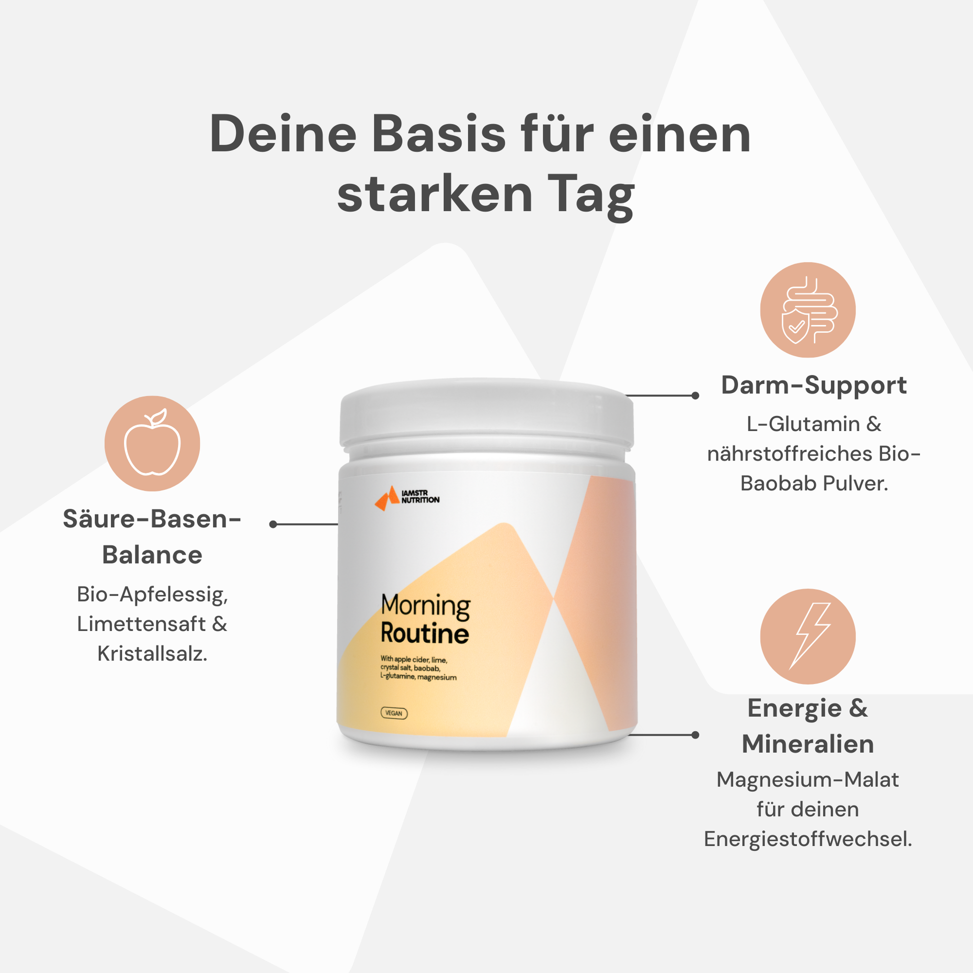 Morning Routine ist der perfekte Weg, um gesund und energisch in den Tag zu starten. Mit einer ausgewogenen Mischung aus Limettensaft, naturtrüben Apfelessig, L-Glutamin, Baobab Fruchtfleisch, rosa Kristallsalz und Magnesium erhältst du alle nötigen Nährstoffe für einen erfolgreichen Tag.
