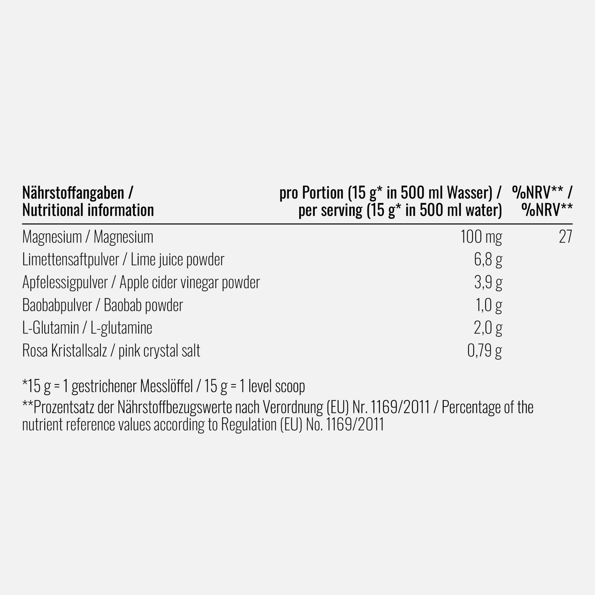 pro Portion (15 g* in 500 ml Wasser)/ per serving (15 g* in 500 ml water) |