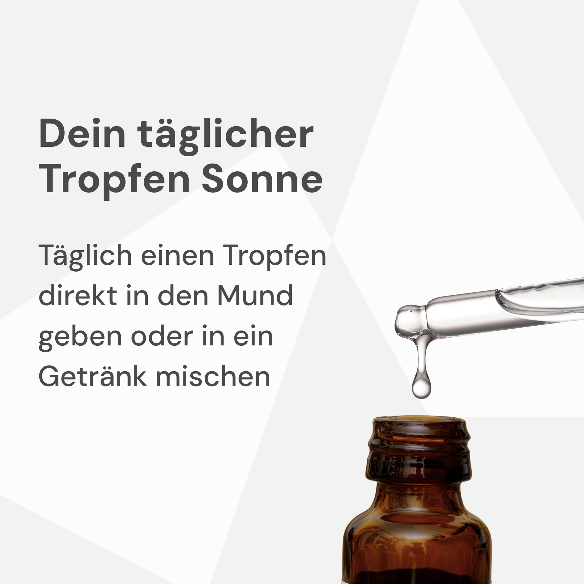 Unsere Vitamin D3 Tropfen liefern mit nur 1 Tropfen am Tag mehr als 100 % der empfohlenen Tagesdosis an Vitamin D laut der Deutschen Gesellschaft für Ernährung e.V. (DGE).